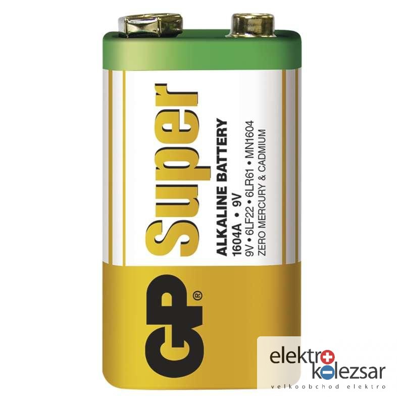 chemické složení: alkalické|hmotnost: 47 g|kapacita: neuvádí se|kategorie/řada: Super Alkaline|max. skladovatelnost: 5 let|možnost nabíjení: ne|napětí: 9 V|počet nabíjecích cyklů: nenabíjecí|prodejní obal: 1 ks, fólie|provozní teplota: -20 °C až +60 °C|rozměr: 26,5 × 17,5 × 48,5 mm|typ: 6LR61 9 V|velikost baterie: 9 V|značka: GP