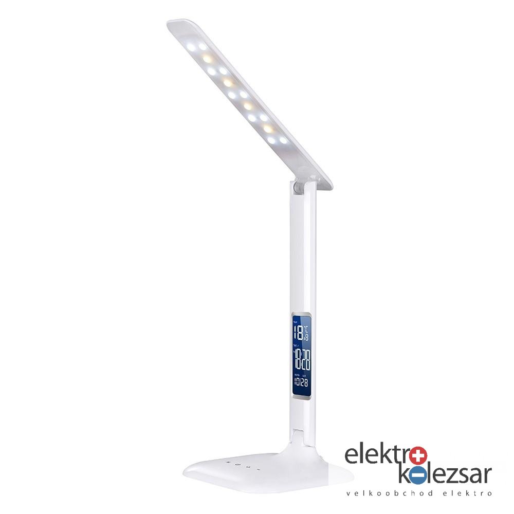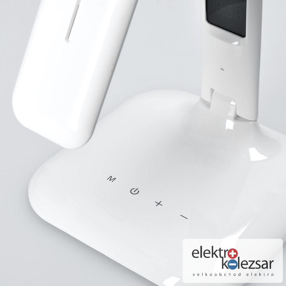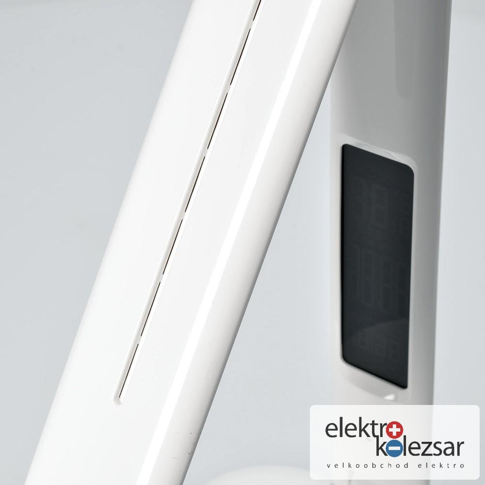 Součástí lampičky je praktický displej s funkcí hodin, kalendáře, budíku a teploměru, takže budete mít všechny důležité informace neustále na očích. Výkon 7 W a světelný tok 300 lm poskytují dostatečné osvětlení pro práci i odpočinek. Úhel svícení činí 140°, užitečný světelný tok je 258 lm. Lampička je napájena ze sítě (100–240V), má délku kabelu 140 cm a rozměry cca 150 x 150 x 330 mm. Materiál: odolný PC plast. LED zdroj je vestavěný a nelze jej měnit. Energetická třída G.