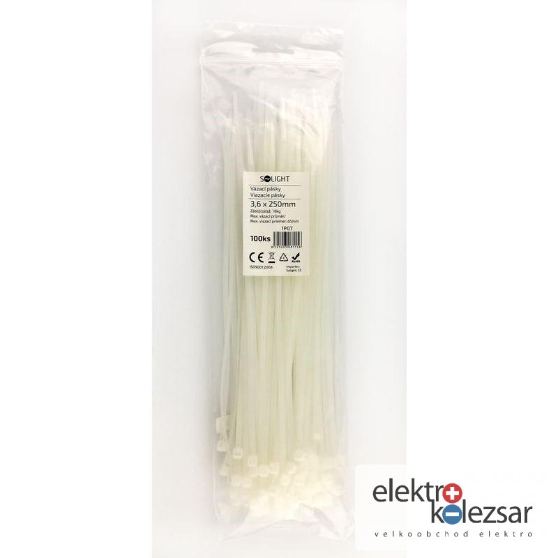 Solight vázací nylonové pásky, 3,6 x 250mm, natural, 100ks