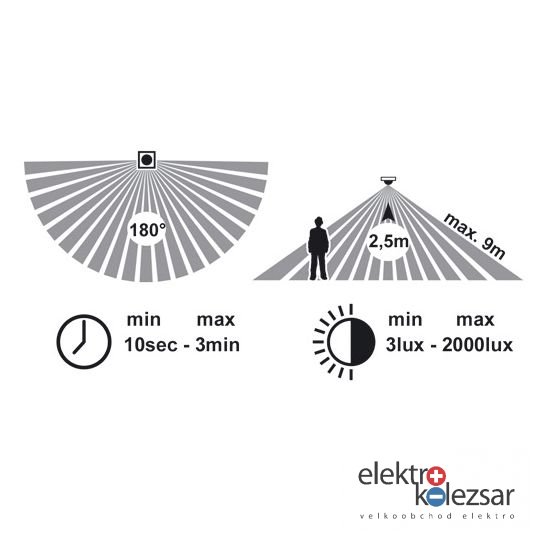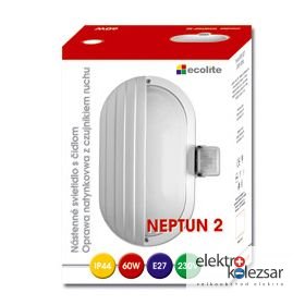 Venkovní nástěnné svítidlo se senzorem pohybu Ecolite NEPTUN 2 má oproti předchozímu modelu vylepšenou konstrukci čidla s krytem z nerezového plechu proti vodě a zajišťuje tak delší životnost svítidla. Lze osadit žárovkou typu E27 (max. 60W). Díky vyššímu krytí lze umístit i do exteriérů na strop i stěnu. Úhel pokrytí je 180˚ a dosah senzoru je až 9 metrů při montážní výšce 2,5m. Zdroj není součástí dodávky.