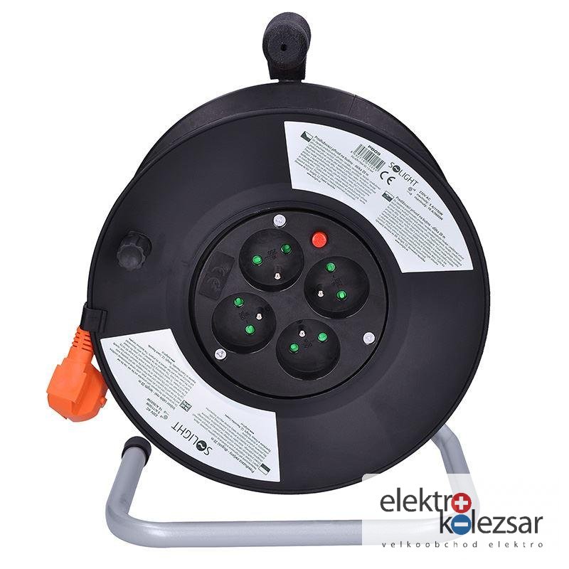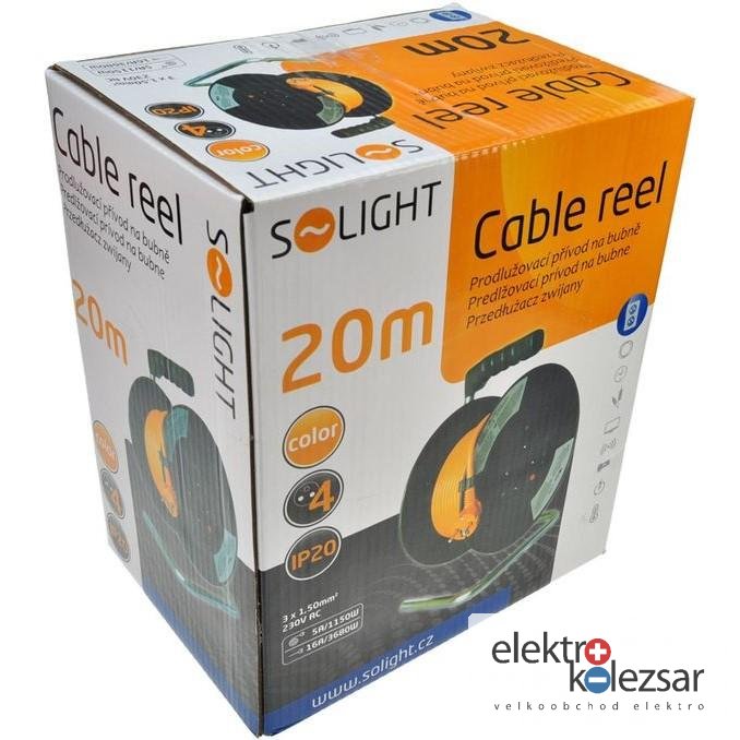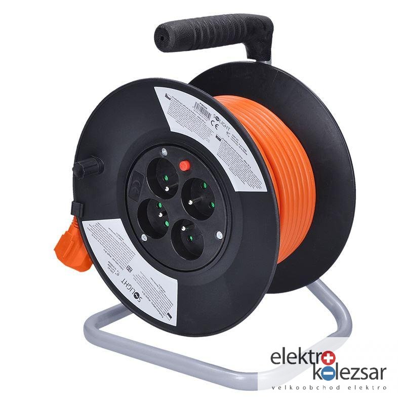 Solight prodlužovací přívod na bubnu, 4 zásuvky, 20m, oranžový kabel, 3x 1,5mm2