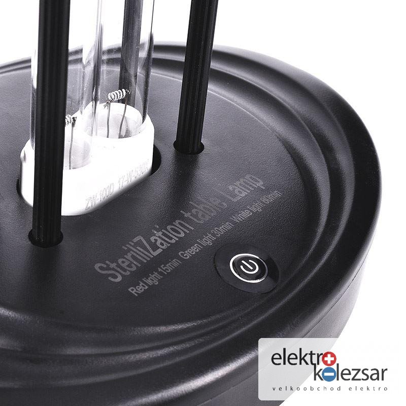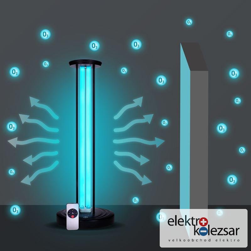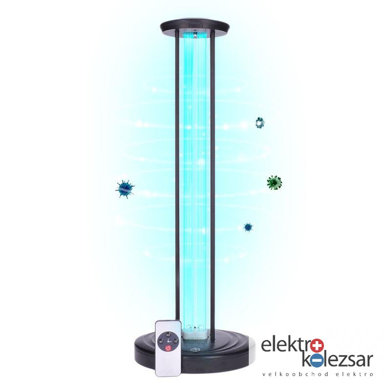 Tato přenosná germicidní lampa s výkonem 100 W dezinfikuje prostory až do 80 m2 pomocí UV-C záření a ozónu. Inteligentní senzor automaticky vypne lampu při detekci osob a znovu ji zapne po jejich odchodu. Likviduje viry, bakterie, plísně a roztoče, přičemž je 3000× rychlejší než chlór a 25× efektivnější než kyselina chloritá. Časovač umožňuje nastavení na 15/30/60 minut. Lampa je vybavena dálkovým ovládáním s dosahem 15 m, má životnost zářiče až 5000 hodin a křemíkovou trubici s ABS konstrukcí. Napájení 230V/50Hz, délka kabelu 1,2 m. Hmotnost 1,3 kg, černá barva.