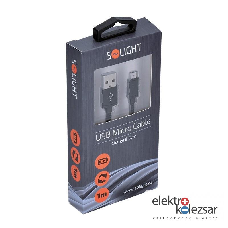 Solight USB kabel, USB 2.0 A konektor - USB B micro konektor, blistr, 1m