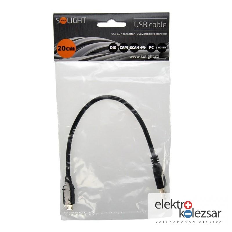 Solight USB kabel, USB 2.0 A konektor - USB B micro konektor, sáček, 20cm